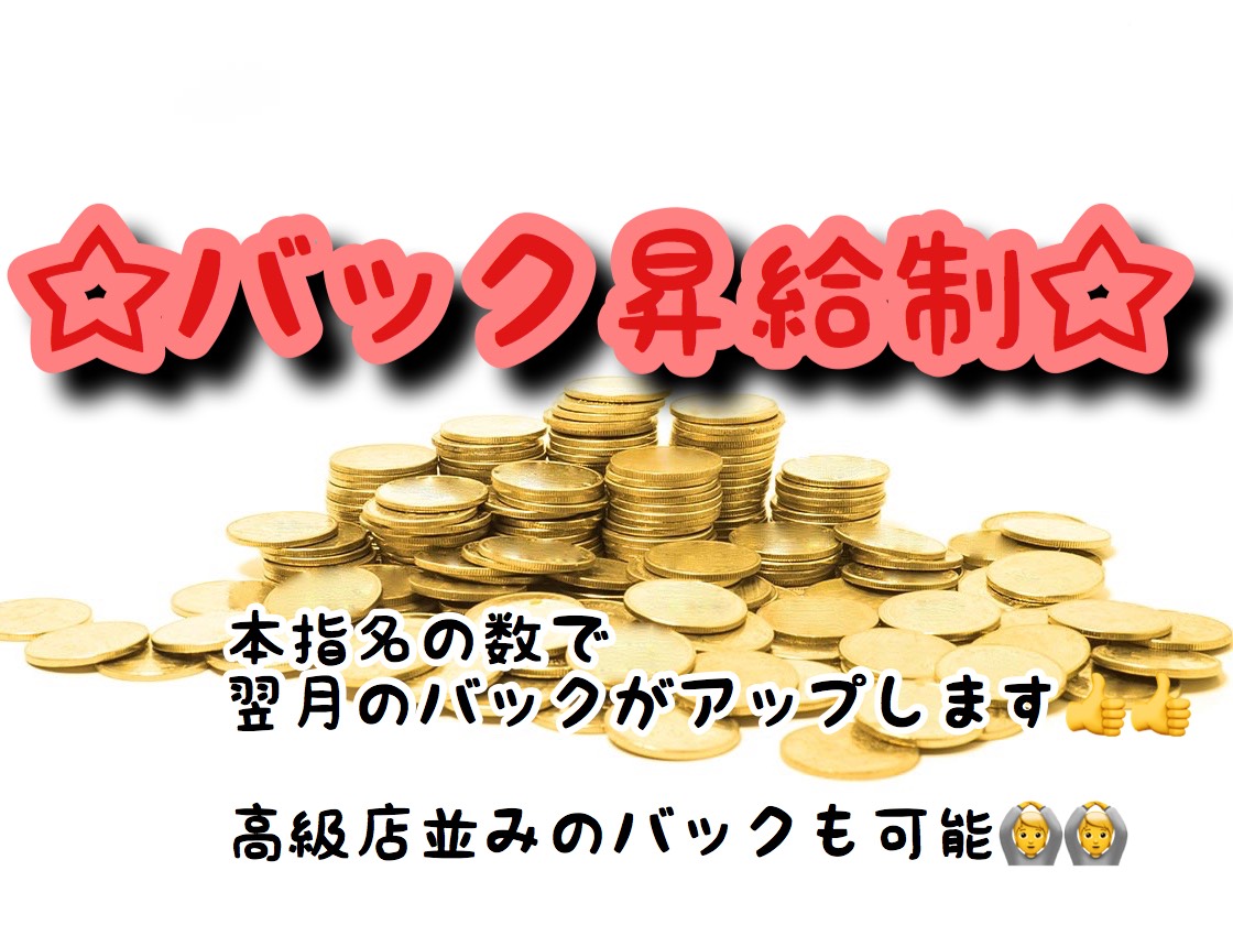 デリヘル「岐阜高山ちゃんこ」では、 女性一人ひとりを平等に評価し、誰もが満足の行く環境づくりを目指すため、 女性の頑張った結果に応じてバックを上げるシステムを導入しました! 年齢や容姿は全く関係なく、 バックをどんどん上げることが可能になるので、 自分のモチベーションもどんどん上がります!