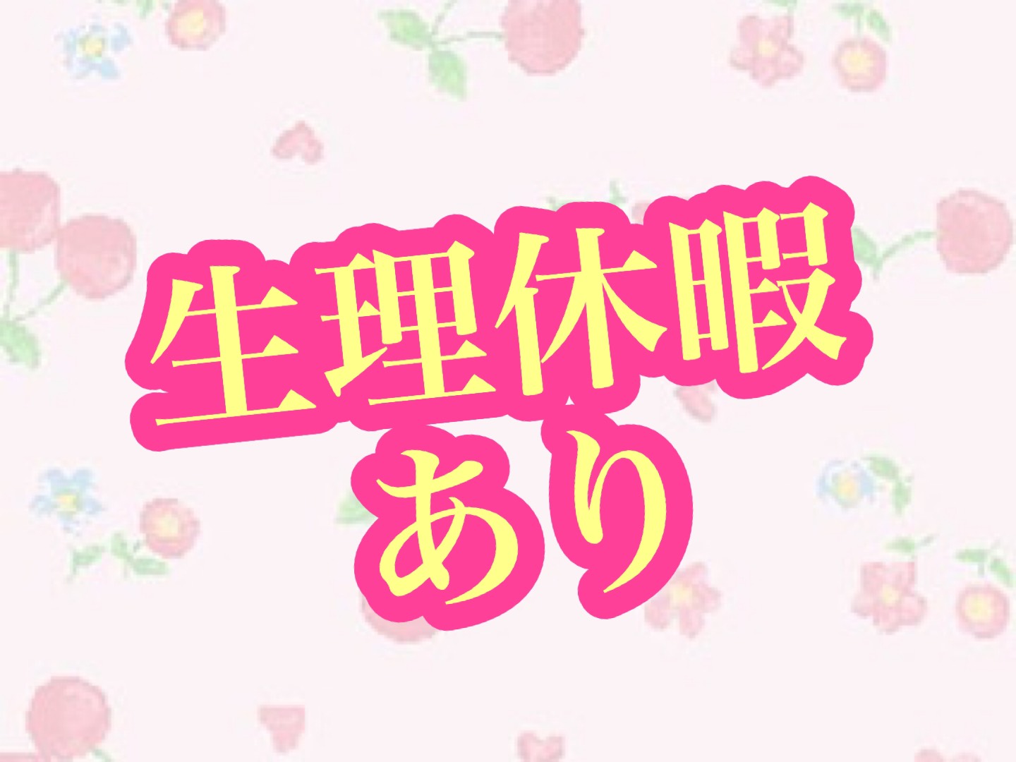 【生理休暇あり!】 風俗のお仕事なので、もちろん! 生理休暇もございます。 しんどい時は無理をせず過ごしてくださいね♪