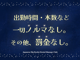| 特典 | 【Japanese Big Boobs Hentai Massage Club3つの待遇】 特典①90分最低19,000円スタート確約 特典②面接交通費2000円支給 特典③お友達紹介で50,000円プレゼント 在籍も出稼ぎも両方大歓迎です! 綺麗な寮完備! |